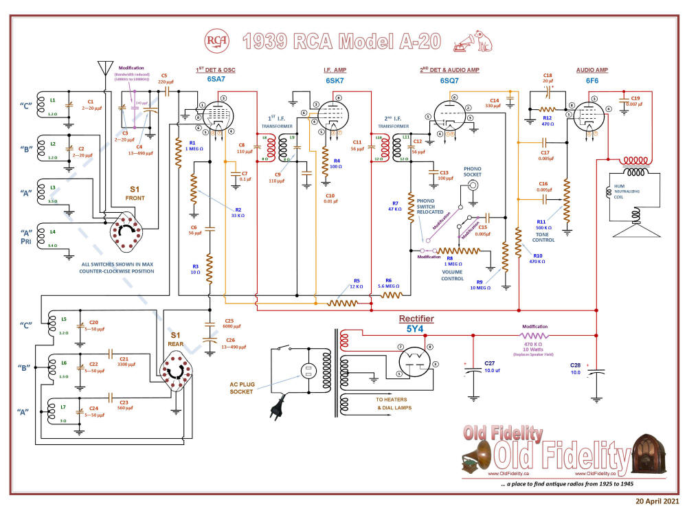 1939 RCA Model A-20 Modified working Schematic
