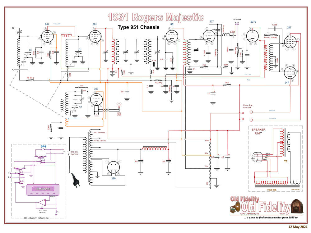 1931 Rogers Model 951 Modified working Schematic